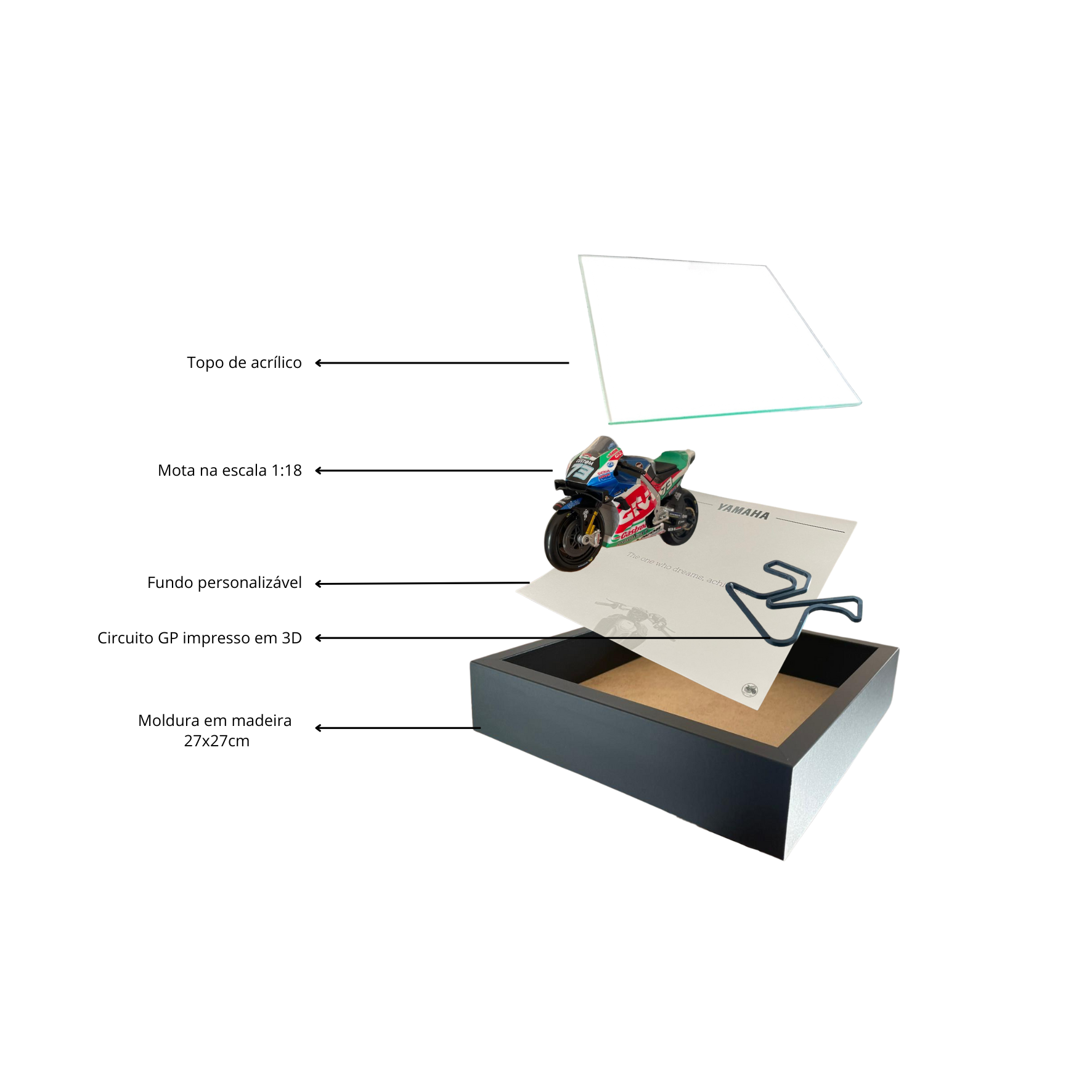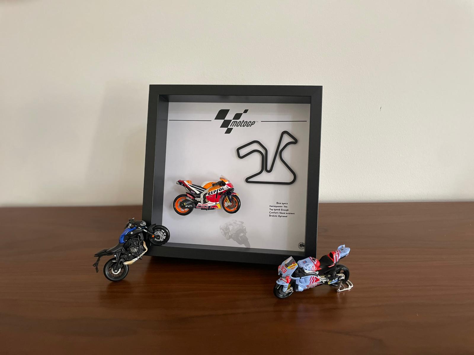 A Bike in a Box cria molduras decorativas exclusivas, que combinam motos em miniatura (escala 1:18) com pistas 3D inspiradas nos lendários circuitos de MotoGP.